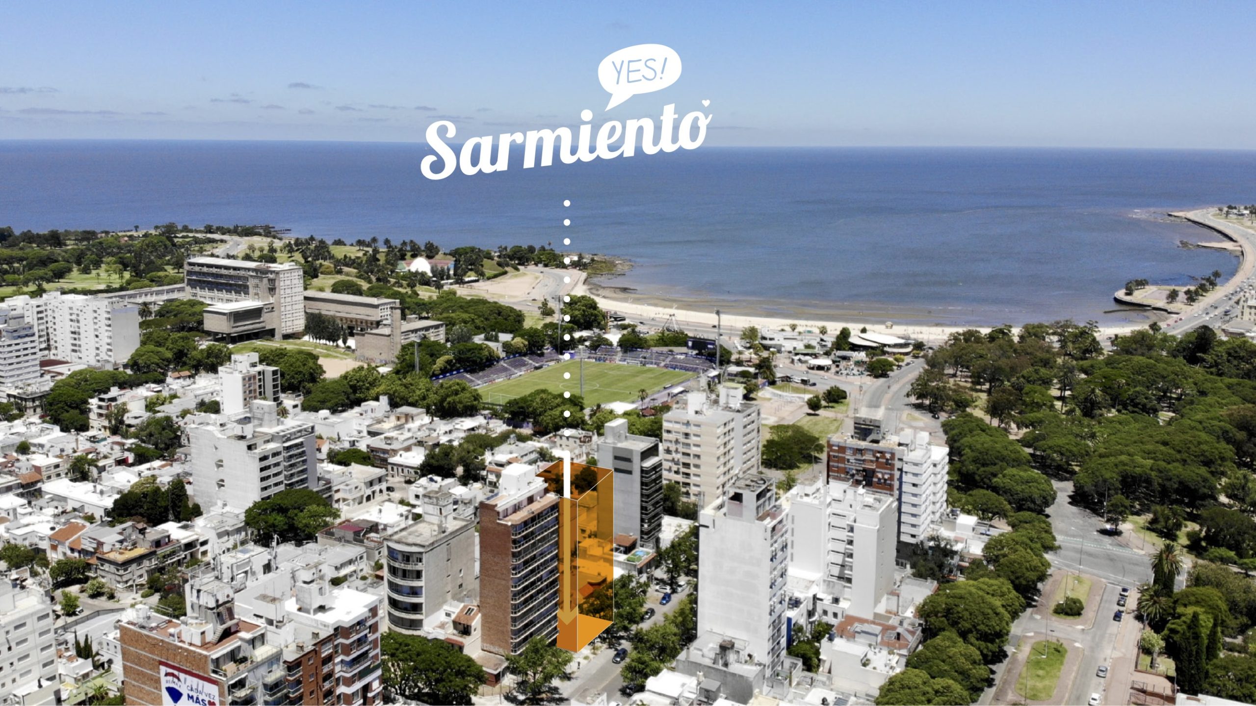 YES SARMIENTO es un edificio de vivienda de diseño contemporáneo, pensado para satisfacer las necesidades del habitar cotidiano. A una cuadra del Parque Rodó y de la Rambla de Montevideo, se diseño pensando en el público objetivo para la zona. Entendemos el concepto YES como ideal para diseñar el edificio que cuenta 59 apartamentos, 24 apartamentos de 2 dormitorios, 34 apartamentos de 1 Dormitorio + 1 apartamento mono ambiente en piso 1. Del total de unidades 47 de ellas cuentan con parrillero propio en la terraza de cada unidad.